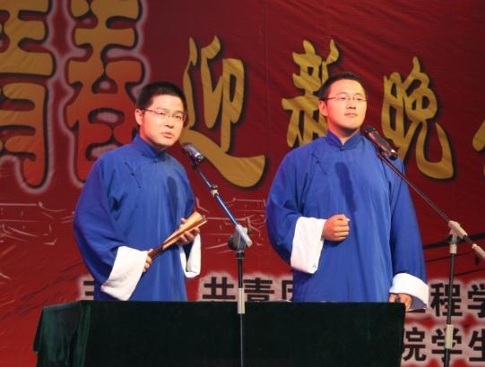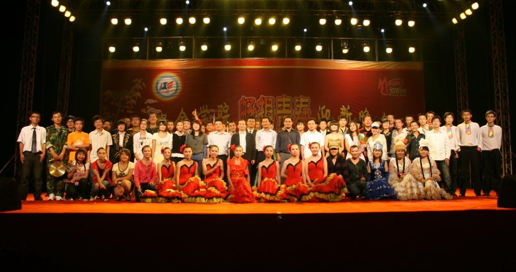 的校十佳歌手熊超献唱的《找自己》引来阵阵叫好;小品《小学 中学 大学》,独具匠心的编排和演员的惟妙惟肖的表演使现场笑声不断;精彩的武术表演《万里长城永不倒》,塑造了中华儿女的英雄气概和千年古韵的威武之躯;一首首耳熟能详的歌曲串烧节目更是将全场的气氛推向了高潮。当歌曲《爱因为在心中》结束后,老师们一起走上舞台,与参加演出的学生们亲切握手。