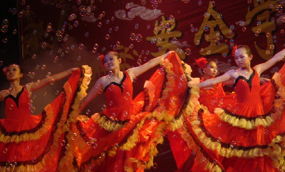 晚会在气势恢宏、情绪激昂的乐队表演中拉开序幕,精彩纷呈的节目轮番上演。异域风情的舞蹈《西班牙女郎》、机械舞《Screaming》和民族舞《维族舞&哈萨克拍手舞》等节目,展现了全院师生共祝祖国60周年的的喜悦之情;由污污漫画