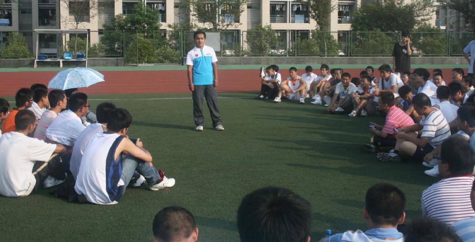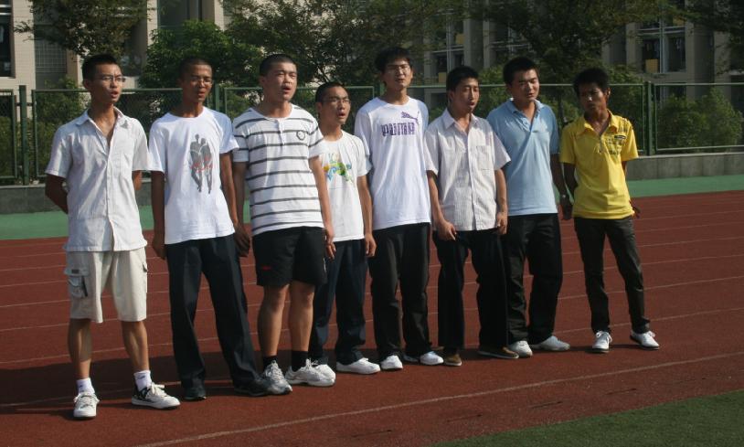 09级辅导员刘筱婕老师组织09级新生在第一田径场进行新生团队素质拓展训练,全体新生参加了本次活动。新生团队素质拓展训练旨在通过游戏加强新生之间的认识和了解,增强班级、团队凝聚力和协作能力,加强学生之间的相互信任,培养学生对团体的奉献精神。