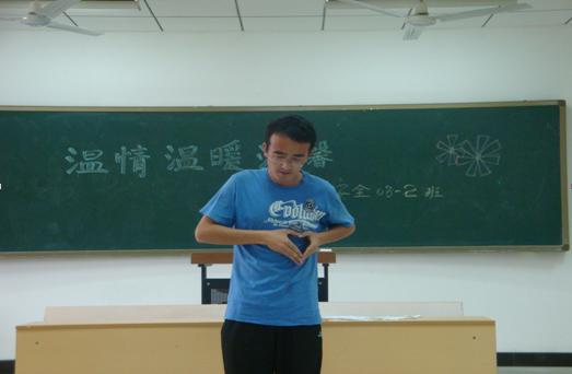 心理自助中心主办,安全08-2班承办的“温暖•••温情•温馨”主题班会活动在教五A203举行。
