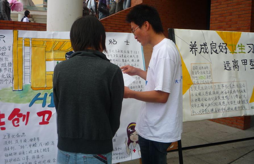 心理自助中心负责此次活动的“预防H1N1流感之个人防护”。本次活动旨在向同学们宣传甲型H1N1流感的基本知识,消除恐慌心理,并宣传日常预防策略。活动现场气氛热烈,取得了圆满成功。