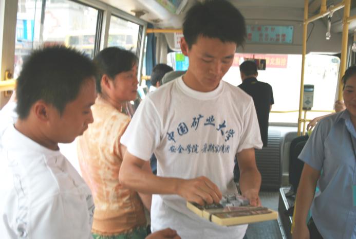 早晨9点,8名矿大志愿者来到铜山新区停车场,经过精心细致的工作分配,志愿者们以小组的形式被分配到各个班次上,以义务售票员的身份亲身体验售票员工作的艰辛。尽管只是一个上午的生活体验,志愿者们从中不仅对售票员工作有了更深的理解,同时也增强了自身的社会服务意识。一名志愿者在活动后深有体会地说,“我们也希望以自己的实际行动感动和带动广大群众积极参与 ‘迎奥运,讲文明,树新风’的活动中,为奥运添彩。”