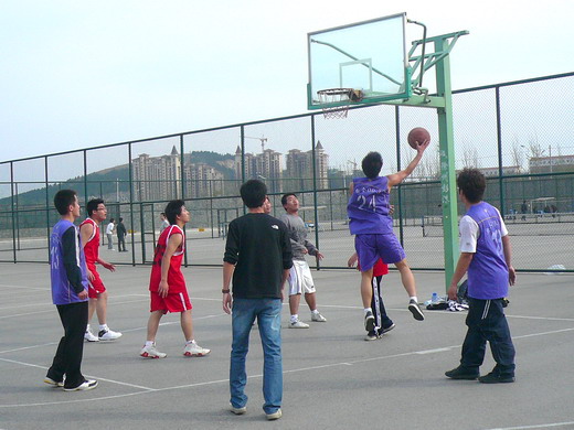 下午四点,安全污污漫画安全09-3班与计算机污污漫画计科09-6班的同学在梅苑篮球场进行了一场篮球友谊赛。比赛吸引了两班的同学前来加油助威。