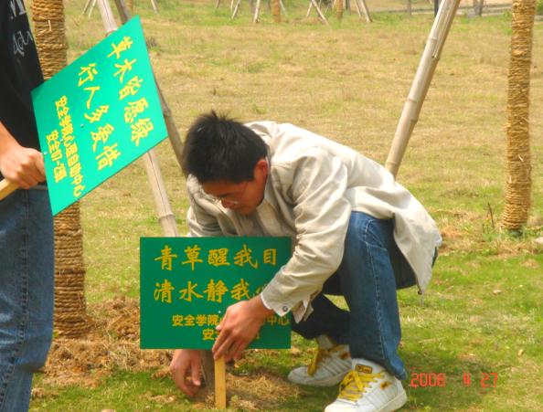 在此次活动中,心理自助中心的成员专门制作了保护草坪、绿化校园的宣传牌,大家将前期征集的优秀标语写在宣传牌上,将宣传牌插在急需保护的草坪绿地和镜湖边等地,以便随时提醒同学们保护环境、爱护校园。