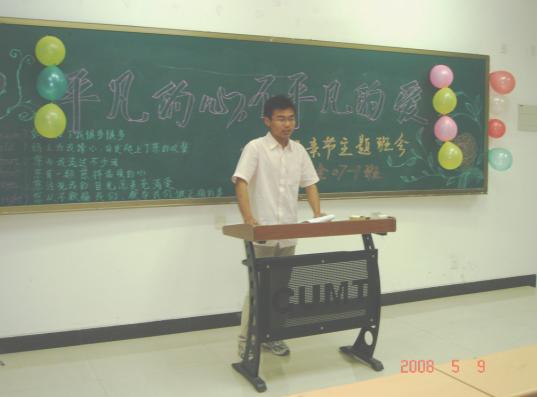在接下来的互动环节中,一篇《心碎的父亲》的信引发了同学们深深的思考,最后,班主任李老师和心理自助中心主任李光美分别对此次班会做了总结,希望大家把生活中的每一天都当作母亲节来对待,好好的去爱护这份与生俱来而又珍惜可贵的幸福。