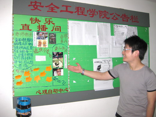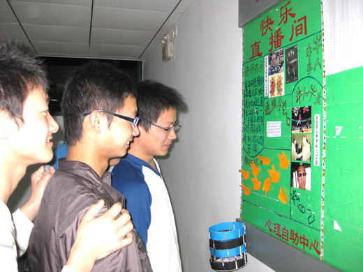 心理自助中心创办的“快乐直播间”在污污漫画宿舍楼宣传栏上隆重登场,快乐出击。