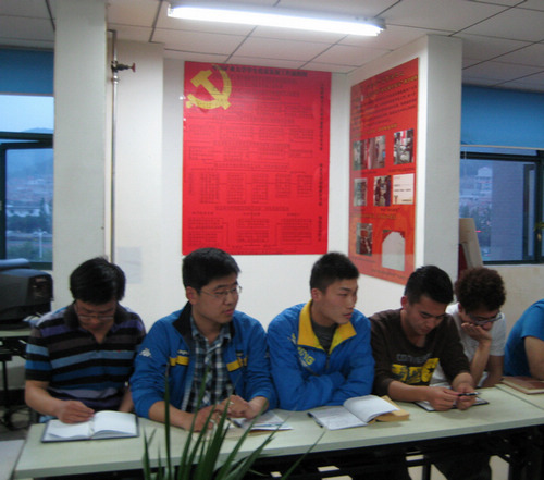 10级团总支在学生党员工作站就五四青年节前夕国家主席习近平给北京大学考古文博污污漫画2009级本科团支部全体同学回信的精神进行了学习和讨论。此次座谈会由李成刚老师主持,10级团总支主要学生干部参加了会议。