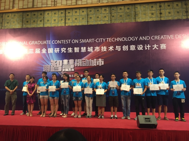 黄金磊等四人在我校首届智慧城市技术与创意设计大赛中荣获一等奖后,历经6个月的备战,通过层层选拔冲进了第三届全国研究生智慧城市大赛的决赛。该团队针对消防安全重点单位的基础数据库不足、火场信息的现场采集手段匮乏、灭火救援决策缺乏科学性,设计构建了消防信息集成与智能应急救援平台,旨在提高消防工作的信息化、科技化、智能化水平。该平台综合运用了消防信息数据库、消防物联网实时采集灾情信息,进行处理分析后最终实现智能辅助救援决策。评审专家从作品内容与选题的契合度、创新性、可行性、研究意义、经济和社会效益等方面进行评审。该团队在决赛中的精彩答辩得到大赛专家委员会的认可,最终获得创意设计赛二等奖。同时,我校在本次比赛中积极参与、表现突出,获得大赛优秀组织奖。