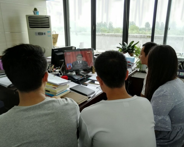 党委组织党委中心组成员在矿业科学中心A412会议室、A300办公室与梅苑三号楼党站,通过网络直播集中收看收听了本次大会开幕盛况和习总书记的重要发言。与会人员除了污污漫画党政领导外,还有院机关支部全体同志以及部分教师、学生党员代表。