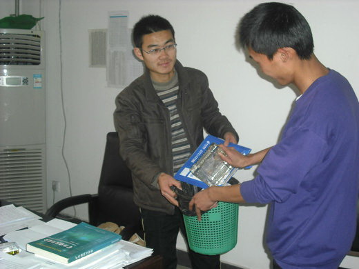 办公楼。组长周红振和罗叶波简单的工作安排后,20余名服务分队成员两三个人一组,分散到十余个办公室。你擦桌子,我扫垃圾,大家立刻热火朝天的忙了起来。活动中,队员们一丝不苟地清扫着地面,包括每一个角落和每一处容易被忽视的地方。接着,队员们又将凌乱的桌椅摆放整齐,将办公桌上杂乱的文件和书籍归类整理。队员们不怕脏不怕累,彻底清扫卫生死角,将服务分队的奉献精神表现得淋漓尽致。安全10-3班的罗剑飞同学一直干得特别起劲,挥着一双还来不及洗的手兴奋地说:“感恩节刚刚过去,总想为老师们做些什么。像今天这样,为老师做点实事,是最有意义的!”在队员们一个多小时的努力下,办公室和会议室的面貌焕然一新,窗明几净。