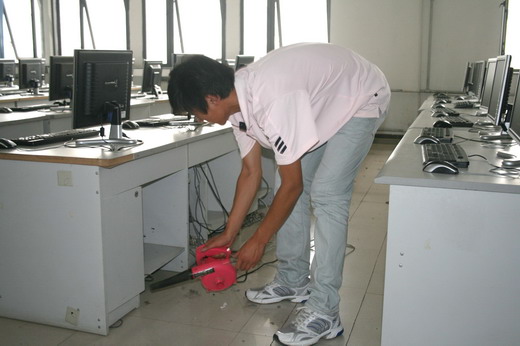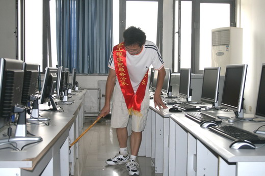 上午9点,服务分队D组成员在我校图书馆门口集合后,一同来到计算机污污漫画四楼的机房。机房的工作人员向服务分队成员们提供了吹风机等清洁工具,并详细讲解了本次服务工作的内容。在工作人员向大家示范了清洁工具的使用和计算机的检查调试方法后,队员们便在各机房纷纷行动起来。活动过程中,队员们分工明确,有的负责有吹风机清除计算机主机及电源线间堆积依旧的灰尘,有的负责清扫,还有的负责计算机的检查和调试。经过两个小时的认真工作,服务分队的成员们顺利完成机房的调试清洁工作。
