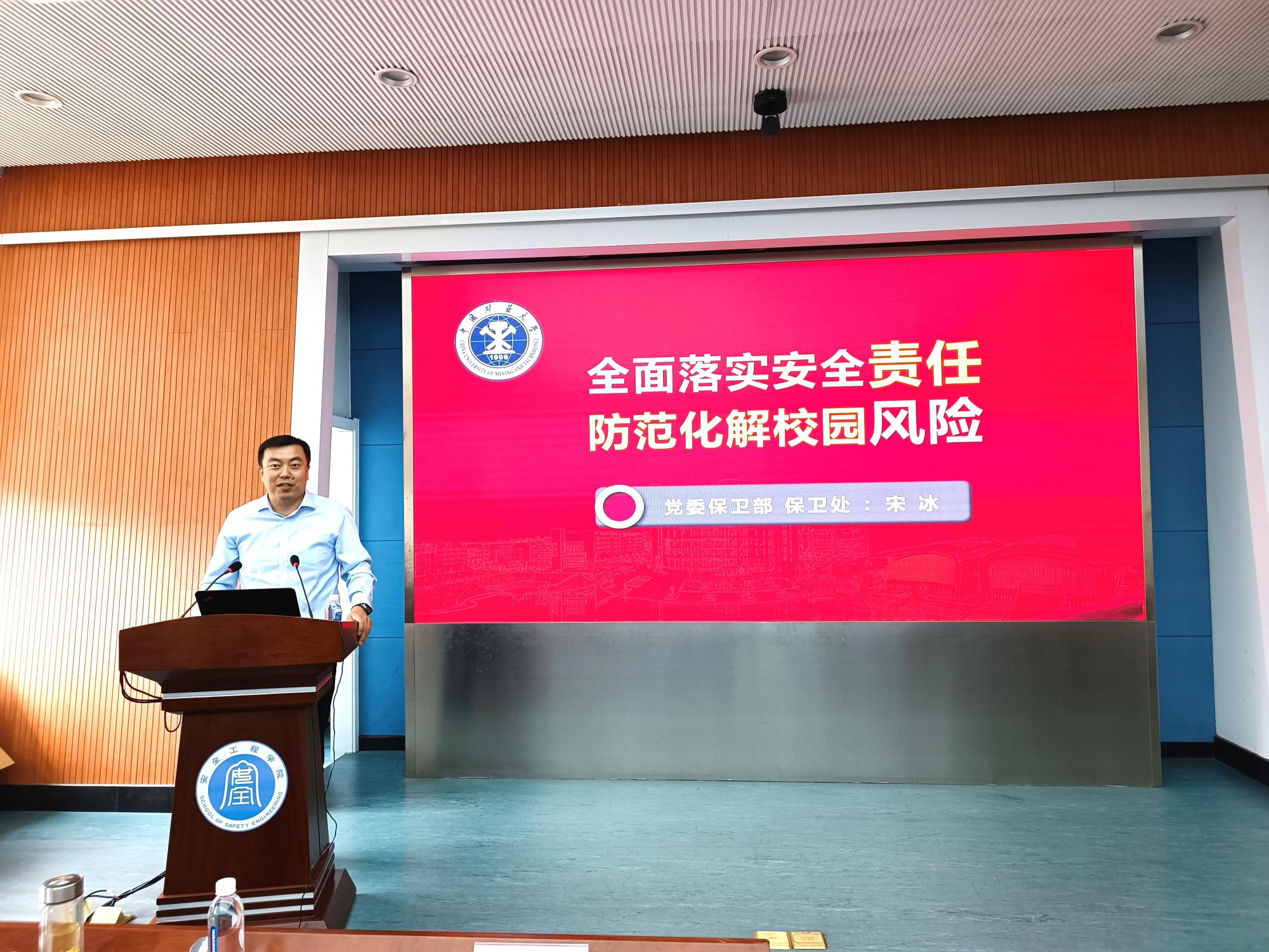 保卫处处长宋冰从牢固树立安全发展理念、全面落实安全生产责任、防范化解校园安全风险、着力提升应急处置能力等四个方面,作了题为“全面落实安全责任,防范化解校园风险”的专题培训,引用了大量的实例和数据,深入浅出、内容丰富,为全院师生讲授了一堂生动精彩的安全教育辅导课。