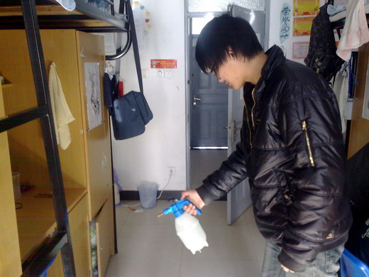 学生宿舍,在梅二、梅三、桃一宿舍楼为他们进行了宿舍义务卫生消毒活动。