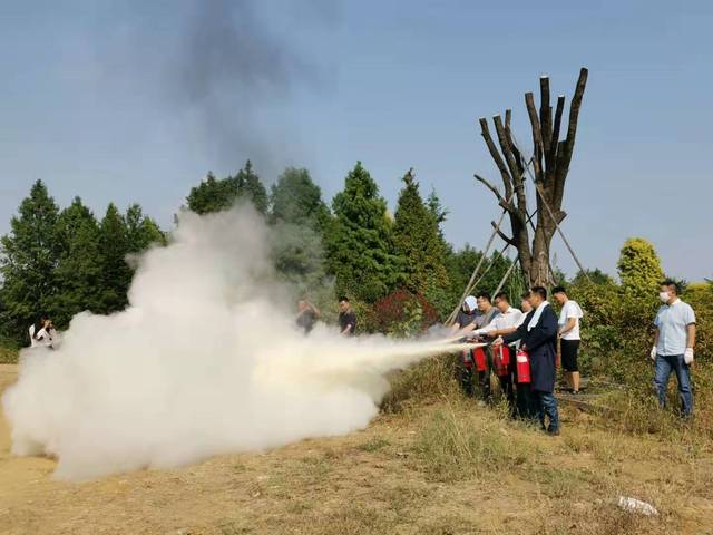 14:30,楼道应急疏散演习结束后,保卫处安全监督科王锐老师向大家讲解了灭火器的分类、灭火原理、“提、拔、握、压”的操作步骤和使用过程中需要注意的事项,并现场演示了如何使用灭火器扑灭油桶火。之后,各单位均派出代表按照操作要领使用灭火器进行了灭火演练。