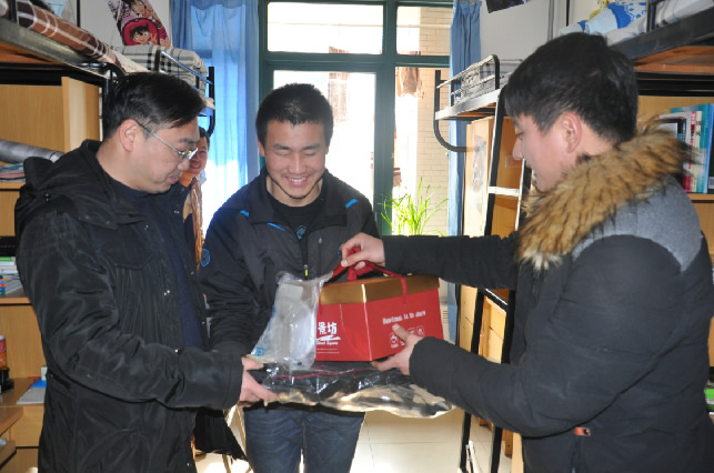 老师们根据学生的所写的愿望,有的亲自外出采买,有的第一时间和学生联系表达提供帮助的意愿。杨永良、李晓伟、翟成、仲晓星、王亮、裴晓东、杨胜强、吴征艳、沈荣喜、王亮、赵恩来、王海锋等分别代表各自党支部送来了买好的礼物,吴冬梅、胡城翠两位女老师专门到商店挑选了两辆自行车,远在美国进行高访的秦波涛教授特意委托学生替他表达心意。青年教师朱传杰博士这次认领了两个学生的心愿。根据学生心愿单上写下的给父母买皮鞋、羽绒服还有按摩器的愿望,朱老师亲自上街选购,用心挑选了款式。他说,自己学生时代也是贫寒学子,通过自己的努力获得国家奖学金来完成自己的学业,所以很能理解许愿学生的心情。只希望他们能在学习上更加精进,珍惜可贵的青春年华与学习机会。