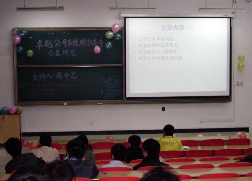 科技学术部主办的模拟小课堂——“系统维护高手”公益讲座在教二C101成功举办,徐州卓越电脑公司电脑软件工程师周中恩应邀担任主讲。