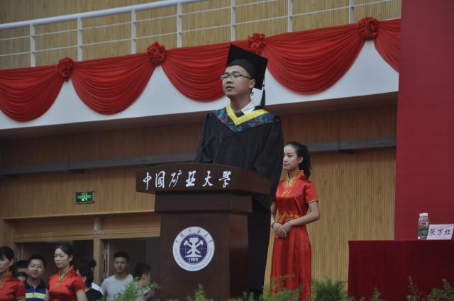 葛世荣校长发表了讲话。他说,对于学生而言,矿大不一定是最向往的,但一定是最难忘的;矿大不一定是最满意的,但一定是最关键的;矿大不一定是知名度最高的,但一定是最努力的。他大量列举了今年的优秀毕业生,并坦诚地表示,与同学期望和愿景相比,矿大的培养质量还存在着不小的差距,要把同学们的满意作为鼓励,继续保持下去,要把同学们的不满意作为鞭策,及时改进完善,努力创办世界第一的矿业大学。学生即将离开母校,游学四海,建树八方,葛世荣校长还表示,作为师长和朋友,有三句走心的话送给大家,概括为“三个不后悔”,即一是不因青春无为而后悔,二是不因辜负父母而后悔,三是不因淡忘母校而后悔。致辞满含深情、语重心长,不断被毕业生热烈的掌声、欢呼声打断。