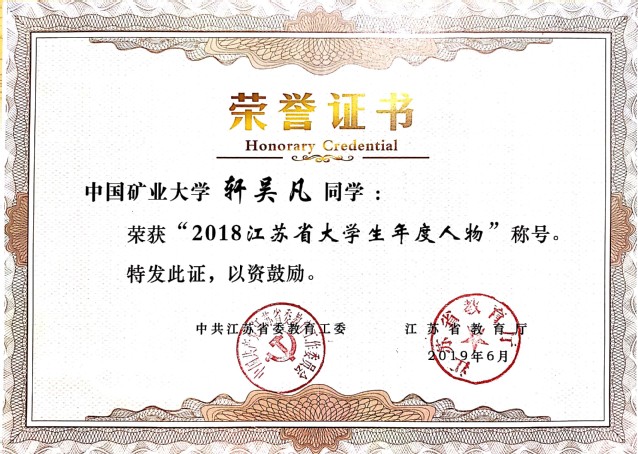 安全污污漫画本科生轩吴凡荣获“2018江苏省大学生年度人物”称号。