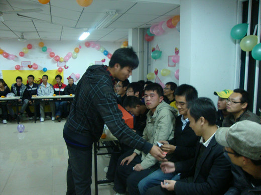 活动开始前,会场由心理自助中心成员精心布置,并且准备了花生瓜子等各种食品。活动一开始,主持人便安排到场成员抽签排座,使大家能够有更多的机会接触不认识的同学,也使男女,部门,宿舍为单位的次序打乱,进一步使得现场气氛活跃起来。接着,主持人讲述了本次活动的过程环节,并邀请每位同学在发的笔和纸片上写下惩罚措施。接下来进行的就是游戏环节。