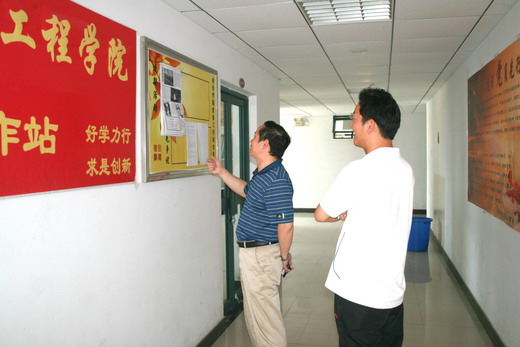 章书记和钱书记视察完党员工作站后提出要求,在07届毕业生离校前夕,党员工作站一定要全力做好毕业生的安全稳定及文明离校工作,组织学生党员带领、引导毕业生开展有益的活动,营造温馨、和谐的毕业氛围,使毕业生能够安全离校、文明离校,带着对母校的依恋离校。