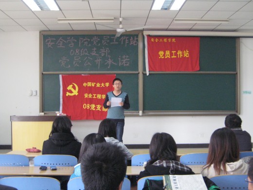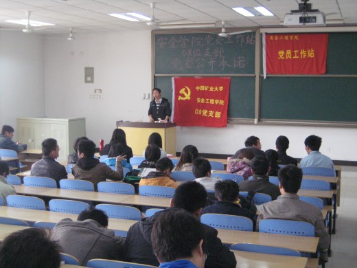 2008级党支部举行了隆重的公开承诺活动。此次活动于4月8日10点在教一A304正式开始,由08级党支部书记徐跃同学主持,支部全体成员以及08级全体学生参加了此次活动。