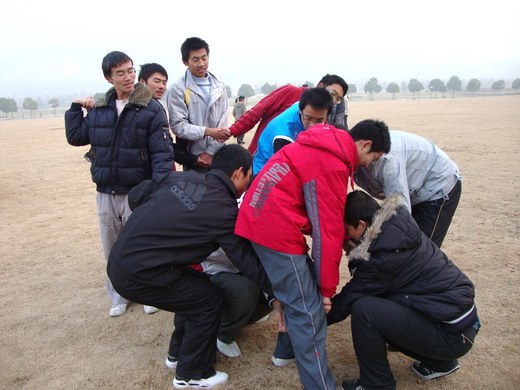 活动分为“两人三腿”“梅花朵朵开”“心有千千结”以及“智能组装”四个单元组成。活动开始,所有参与成员分成四组进行两人三腿比赛。同学们在领跑者的带领下一起奋斗,充分的感受到团队的合作精神和凝聚力。在这种跌跌撞撞的氛围中同学们更是感受到了团结协作的重要性。接着进行的多人围圈活动,在组织者叫出只有一人落单的梅花数时,有的同学被整个集体放弃。领导者对此进行了讨论,当落单同学说出自己“失望加绝望”时,所有人陷入了沉默。在组织者的辅导下,同学们踊跃阐述了“不抛弃,不放弃”所蕴含的深刻意义,有了“宁肯全体受罚,也不抛弃任何一个同学”的决心。大家集思广益,心往一处用,劲往一处使,培养了团结合作的优良品质。