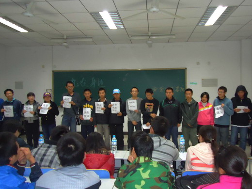 本次活动由女生部部长孙鹏飞主持,第一项活动是以班级为单位进行的情景剧表演。首先出演的是10级消防班,他们以在餐厅、自习室等公共场合所发生的一些不文明的现象为题进行表演,配以演员们夸张的动作,充分地映射了“与礼随行”的活动主题。紧接着的是安全10-3班的演员们的精彩演出,他们以一对情侣在不同场合所表现出的言行举止,讽刺了此类不文明的行为,其中女主角精彩的反串表演赢得了大家的一致好评。随后其他班级也为大家带来了精彩的表演。在评委独到的点评后,活动进入第二项的猜词环节。才此环节中,同学们积极互动,使本次活动的气氛推向高潮。最后,评委团综合两项活动的结果评选出了本次活动优胜奖。其中安全10-2班获得了一等奖,安全10-3班获得了二等奖,其余班级均获三等奖,活动在一片活跃的气氛中圆满落幕。