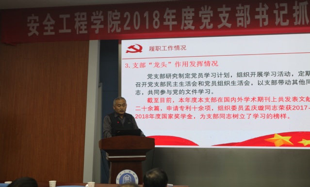 校党委副书记、纪委书记付恒升在听取党支部书记现场述职后发表讲话,他说,开展基层党支部书记抓党建述职评议考核工作,既是上级明确要求,也是工作迫切需要。党支部工作做到位了,支部的战斗堡垒作用和党员的先锋模范作用发挥出来了,党的执政基础就巩固了,学校的教学科研和育人工作就有保障了。党支部是党的最基层组织,做的是最基础也是最重要的具体工作,党支部书记要紧扣抓党建第一责任人这根主线,不仅要认真总结成绩经验,积极亮出支部工作特色,也要深入分析存在的问题,提出加强和改进工作的思路措施。希望大家通过述职报告,互相学习借鉴,推动基层党建工作做得更实、更好。