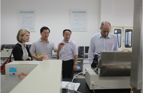 教授为澳大利亚卧龙岗大学Chris Cook院长一行介绍实验设备