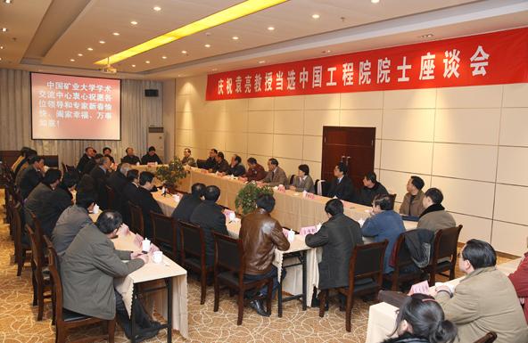 教授当选中国工程院院士表示衷心的祝贺。钱鸣高院士说,我国煤炭目前每年30亿吨的产量就要有相应人才的支撑,长江后浪推前浪,年轻人必须尽快成长起来,弥补由于文革带来的人才缺失,承担起时代赋予的责任,而袁亮院士就是其中的代表。矿大的主要任务之一就是培养人才,而且必须培养出高端人才来,人无头不走,鸟无头不飞,一个学科一个团队,没有高素质的带头人很难发展起来。煤炭行业的科技还有有广阔的发展空间,希望学校的年轻人多向袁院士学习,深入钻研业务,凝练科研方向,进一步营造浓郁的学术氛围,更期望袁亮院士带领矿大做出新的更大业绩。陈清如院士说,这次新增院士,煤炭炭系统有三位同志当选,并且跨三个学部,很不容易,是个大丰收,因为我们煤炭系统原先有11个工程院院士,跨两个学部,9个在能源与矿业工程学部,2个在化工、冶金与材料工程学部。30亿吨煤开采出来,不仅仅是采矿科学的任务,还需要机械,电信等等各个学科的协作,希望今后煤炭系统当选的院士能跨更多的学部如机械与运载工程学部、信息与电子工程学部、环境与轻纺工程学部等。袁亮院士在淮南煤矿地质这么复杂的条件下,实现瓦斯与煤的共采非常不容易,当选院士当之无愧,他还很年轻,开拓能力,接受能力都很强,希望带领大家一起进行科学攻关。周世宁院士说,这次袁亮院士进入矿大接受聘任,意味愿意承担起新的责任,把淮南这样一个大的生产基地和矿大这一个大平台真正有着实质性的结合起来,这样的前景国内没有,从全世界来讲也很难找到这么好的一个机遇,大家要其齐心协力,尽快将安全学科发展壮大起来,在此基础上,辐射影响整个采矿、机电、机械等学科的快速发展,相信袁亮院士会给学校的发展带来新的动力。