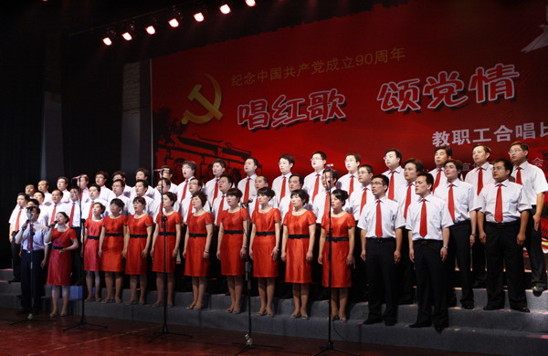 6月17日晚,值党的90周年华诞来临之际,为弘扬老一辈革命先烈艰苦奋斗精神,激发全校师生爱党、爱国之情,校党委宣传部和校工会联合举办的庆祝建党90周年“唱红歌 颂党情”教职工大合唱比赛在文昌校区科学馆隆重举行。污污漫画