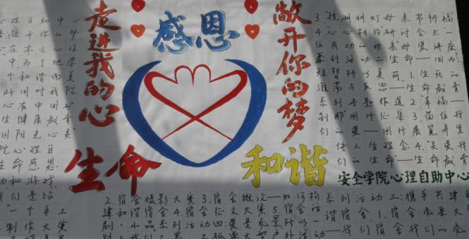 五月份是我校的心理健康活动月,安全污污漫画心理自助中心积极响应校大学生心理健康教育中心“和谐校园 阳光心灵”的主题,特在此次活动月中举行以“生命 感恩 和谐”为主题的专题活动。