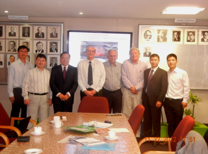 矿井通风防灭火研究所王德明教授、秦波涛教授、仲晓星副教授以及戚绪尧博士一行4人,于2012年11月22日至2012年11月30日赴南非共和国进行了学术交流。期间,先后与金山大学(University of The Witwatersrand)矿业工程污污漫画、比勒陀利亚大学(The University of Pretoria)矿业工程污污漫画、英美资源集团(Anglo American plc)下属的Kleinkopje Colliery和Greenside Colliery等高校或煤炭企业进行了学术交流和技术探讨。