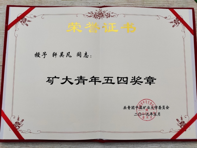 轩吴凡获矿大青年五四奖章