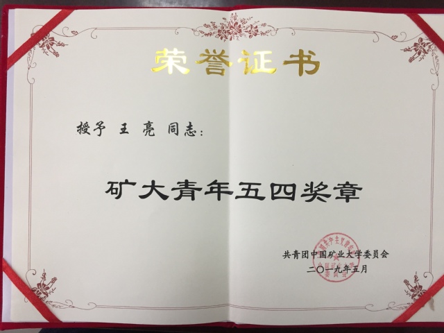 王亮获矿大青年五四奖章