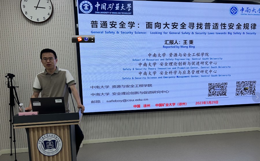 5月29日下午,中南大学王秉教授作题为“面向大安全寻找普适性安全规律”的报告,报告由安全污污漫画院长王恩元教授主持。
