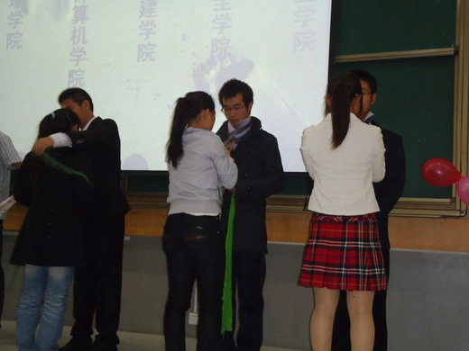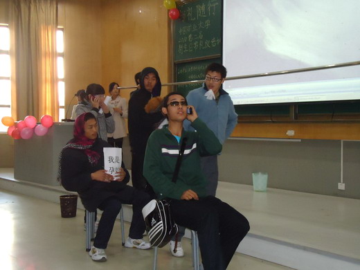 的参赛节目是由乐曲协会主席张航铭指导编排、安全10-2班出演的话剧《公交礼仪》。同学们在动感的背景音乐中,通过正、反两面人物,用夸张的动作,幽默地展现了公交车上的文明礼仪。博得在场观众的阵阵掌声。
