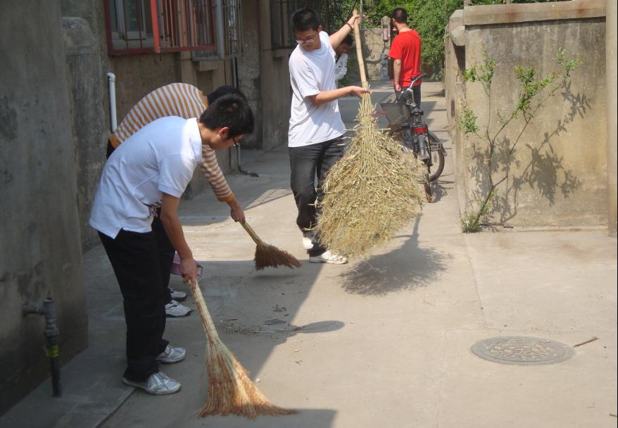 师生首先与干休所战士一起打扫营院、楼道卫生。大家齐心协力,一起体味劳动的快乐。