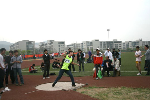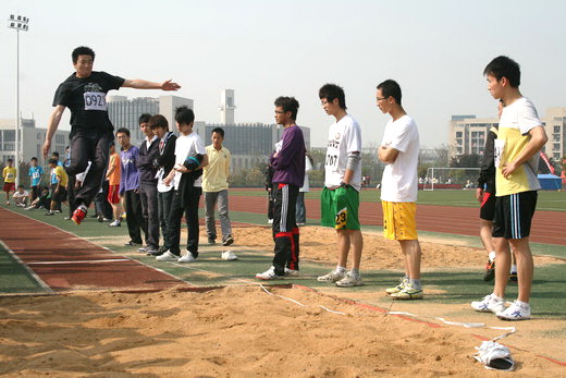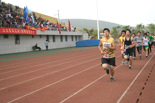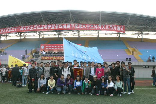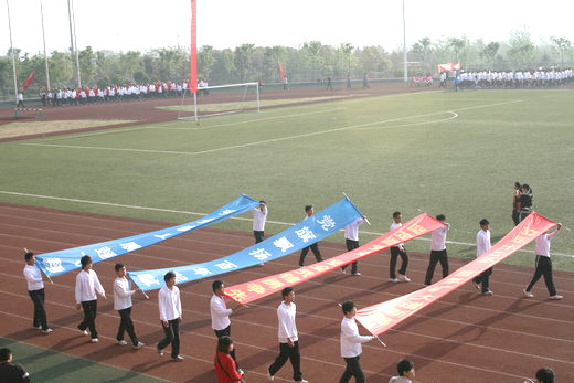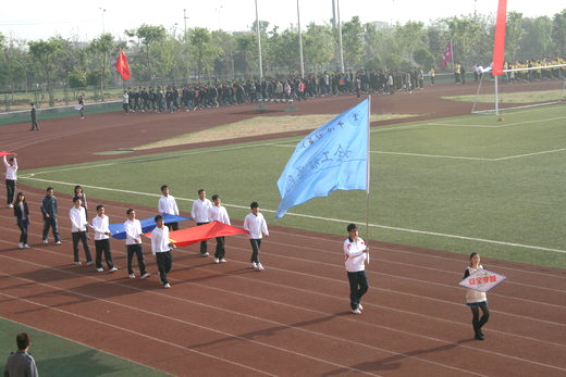看台上的同学遵守秩序,为运动员们摇旗呐喊,加油助威,充分展示出安全学子精诚团结、积极向上的风采。