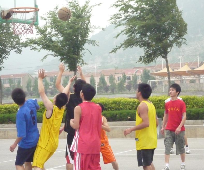 在比赛中,同学们积极投入,矫健的身姿,精彩的投篮,呐喊声、欢笑声漫成一片,整个赛场洋溢着快乐融洽的气氛。比赛历时两天,经过激烈的淘汰赛,梅三B616、梅三B614、梅三B615、梅三B6111,分别小组胜出进入决赛。