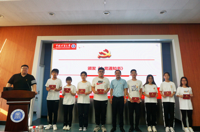 院党委副书记孙留涛为新发展党员颁发《入党通知书》
