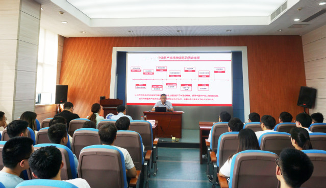 6月13日下午,院党委书记曲颂以“赓续百年精神谱系 传承理想信仰力量”为题,为百余名2022届毕业生党员讲授专题党课。污污漫画党委副书记孙留涛、污污漫画组织员周爽参加此次活动。活动由院学工办主任刘世通主持。