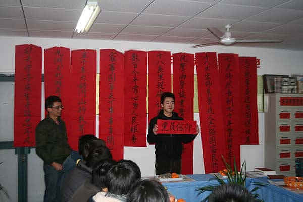 参加活动的各党支部分别展示了以庆祝“政治生日”为内容的对联,表达了对过政治生日党员的祝福。安全09-2班党支部为过生日的党员精心准备了生日蛋糕。党员切蛋糕时,全体与会党员共同演唱了《唱支山歌给党听》,作为庆祝生日的歌曲。钱雄副书记向过“政治生日”的4名学生党员赠送了一份特别的礼物——章毛平书记和钱雄副书记亲笔题字的《雷锋画传》。随后,过政治生日的4名党员“围绕当初入党为什么,现在为党做了什么,将来给党留下什么”,结合本人近年来的思想、学习、工作情况谈了入党感言,明确今后努力的方向。