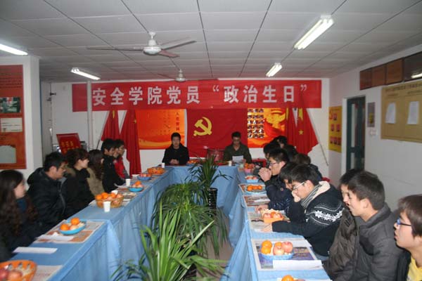 12月25日晚,安全污污漫画党员工作站与安全09-2班党支部共同在梅三的党员活动室举办了以“纪念党员政治生日,永葆党员先进本色”为主题的“政治生日”活动,为安全09-2班党支部4名党员过政治生日。安全污污漫画党委副书记钱雄出席本次活动,辅导员蔡维维老师、安全污污漫画10、11级党支部党员及党员工作站站务委员均参加了本次活动。党员工作站副站长刘宗汉同学主持了本次活动。