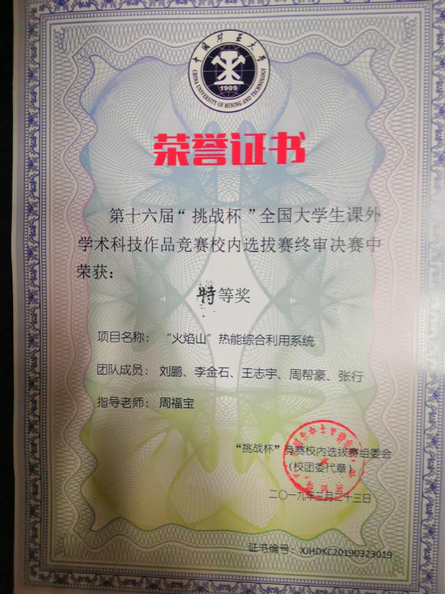 1、刘鹏团队“火焰山”热能综合利用系统项目,指导教师:周福宝;