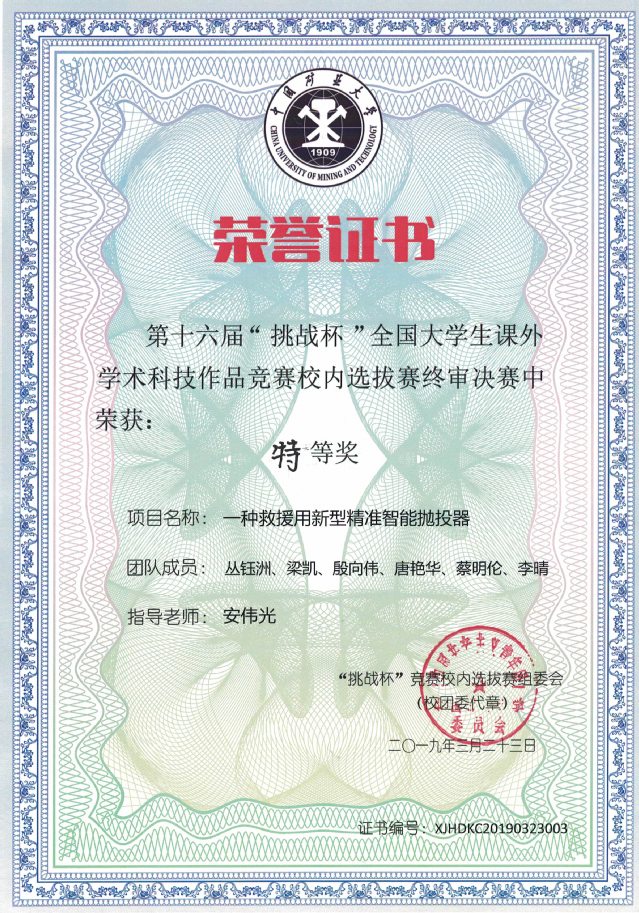 3、丛钰洲团队“一种救援用新型精准智能抛投器”项目,指导教师:安伟光;