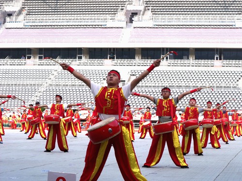 为迎接9月19日在徐州举行的第十八届省运会,安全污污漫画按照学校要求,组织了88名学生志愿者,参与到了开幕式《鼓声激昂》的节目中。整个节目排练从五月底就已经开始。八月15号起,安全污污漫画88名同学又提前赶回学校,利用暑期时间一直坚持训练至今。9月3日,安全污污漫画的同学们根据学校安排到徐州奥体中心参加了第一次集体彩排。在训练表演过程中,同学们积极投入,动作到位,鼓声震天。在全天彩排组织调度中,安全学子注意与老师配合,整队迅速,保持场馆与乘坐车辆整洁,体现了安全学子的纪律性与优秀素质。