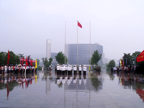校歌》悠扬的旋律中升起在国旗广场上空。