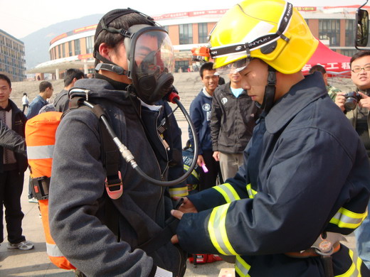 消防特勤二中队的战士们各个都装配整齐。当他们将各种消防设备陈列出来时,引起了同学们极大的兴趣。面对同学们的好奇和疑问,消防战士们耐心细致地进行了讲解。同时对救生、破拆、侦检、堵漏、输转等方面的消防设备进行了详尽的介绍,并协助同学们亲身体验了消防设备的佩戴和使用,活动现场气氛十分活跃。章毛平书记在活动现场亲切地与消防官兵交谈,并与同学们就校园安全与消防知识进行沟通。活动期间青协成员为过往的同学们分发了校园防火自救知识的传单,积极的宣传消防知识。