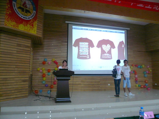 比赛开始前,每位选手抽签决定出场顺序,并从到场观众中选取20位大众评审参与作品评分。比赛中,每组选手有四分钟的时间按为在场观众介绍自己作品的设计理念以及背后的故事,选手们的纪念衫设计及PPT展示为大家展示出新一代矿大学子的风范与朝气。有的选手用极富感染力的演讲感染了所有的观众,有的选手用别致的设计吸引了大家的眼球,有的选手用新颖创新的PPT展示给大家带来了一场视听上的盛宴。入围决赛的20份作品无论在形式上还是内容上均让人眼前一亮,选手们用自己的创意为即将毕业的学子们祈祷、祝福。赛程过半时,来自外文污污漫画的十佳歌手任文笔同学带来了一首热情四射的《热情的沙漠》,将比赛推向了高潮。
